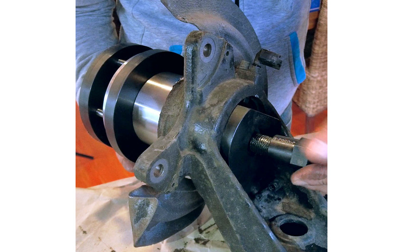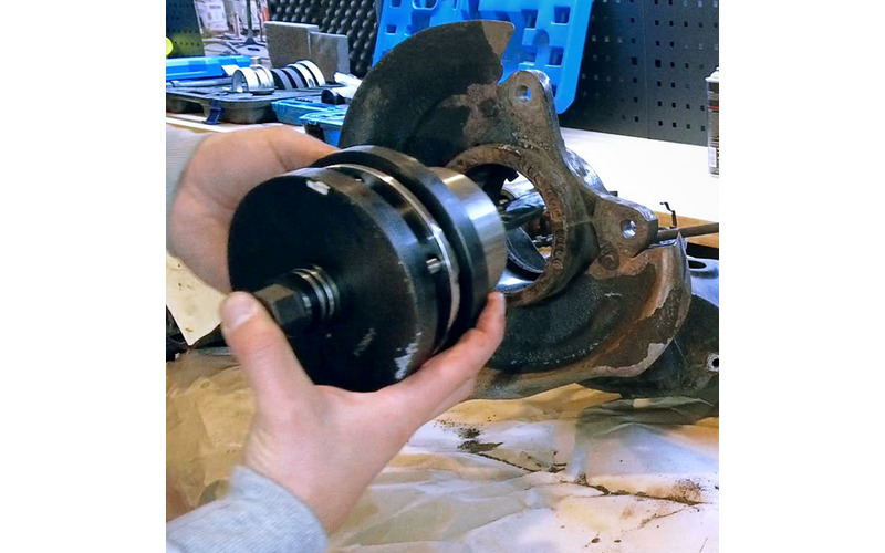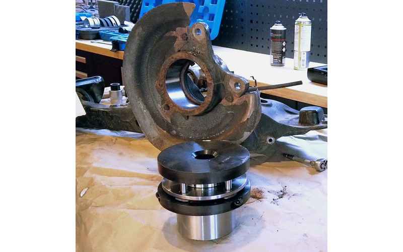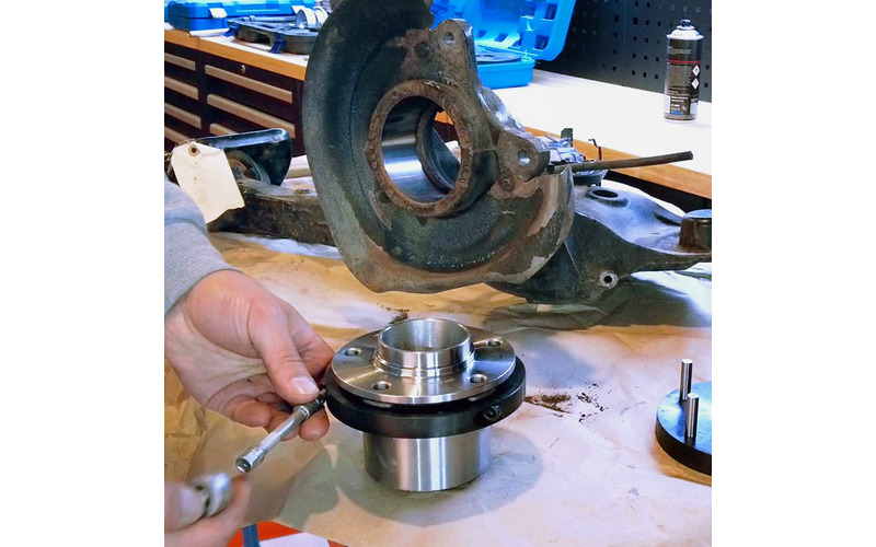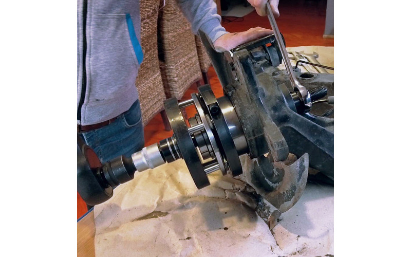 Mit diesem Werkzeug ist es möglich die Kompletteinheit Radlager/Radnabe an der Hinterachse zu wechseln, ohne den Achschenkel auszubauen. Der Komplette Demontage- und Montagevorgang findet direkt am Fahrzeug statt.