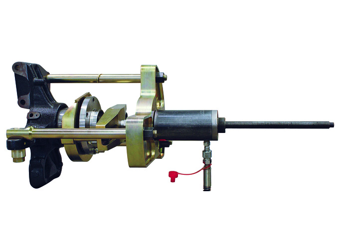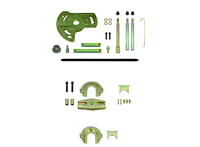 Zum Aus- und Einbau der Radnaben/-Lagereinheit an der Vorderachse am Fahrzeug. Durch die besondere Konstruktion der Radnaben/-Lagereinheit ist ein herkömmlicher Aus- und Einbau nicht möglich, da die Radnabe keine Mittelbohrung aufweist sowie den Lageraußenring des Radlagers abdeckt. Die spezielle Konstruktion des Werkzeuges ermöglicht den fachgerechten Wechsel der Radnaben/-Lagereinheit am Fahrzeug. Das Einpressen der Radnaben/-Lagereinheit erfolgt dabei nur über den Lageraußenring, was eine Beschädigung des Radlagers ausschließt. Erforderliche Antriebsteile: Hydraulik-Zylinder 17 t. Passend für die Vorderachse an Mercedes Vito / Viano (W639), Sprinter (906) und VW Crafter (2E/2F) ausschließlich mit Hinterradantrieb, nicht für Allradantrieb.