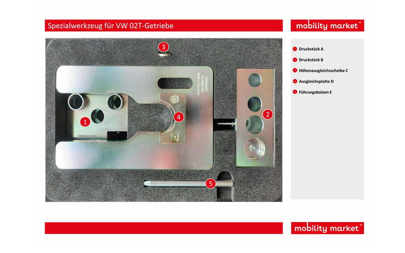 Defekte an den Getriebehauptlagern des 02T-Getriebes der VW Gruppe machen sich durch deutliche Geräusche bei verschiedenen Drehzahlen bemerkbar. Dieser Werkzeugsatz unterstützt bei der Demontage und Montage des Getriebes und ermöglicht den professionellen Austausch der Getriebehauptlager.