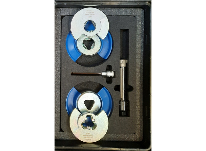 Das Druckplattenpaar ermöglicht, in Verbindung mit dem erforderlichen Zubehör, den schnellen und sicheren Aus- und Einbau von Fahrwerksfedern an Quer- und Raumlenker-Achsen direkt am Fahrzeug. Universell passend. Besonders passend bei Mercedes-Benz E-Klasse (W211, W212), C-Klasse (W204), GLA (X156), GLK (X204); Ford Focus II + III (MK2 + MK3); BMW 1er (E81) sowie Audi.