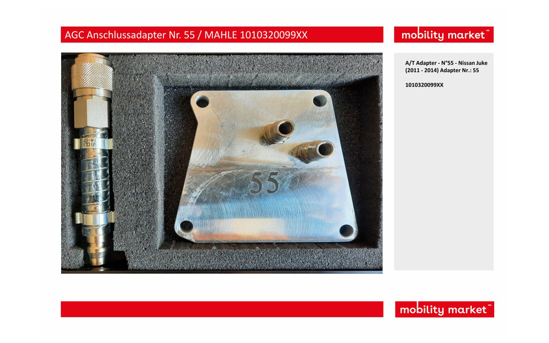In diesem Fall handelt es sich um den AGC Anschlussadapter Nr. 55, mit welchem Du CVT-Getriebe von Nissan Juke (2011-2014) spülen kannst.