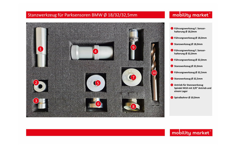 Mit diesem Werkzeugsatz kann man die Löcher für die rückwertigen Parksensoren der Fahrzeuge der Marke BMW mit Durchmesser: Ø18-32-32,5mm ausstanzen