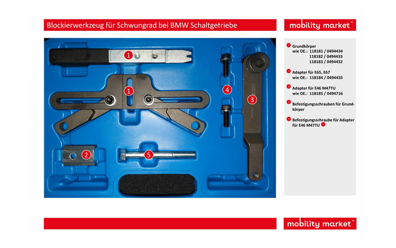 Zum Blockieren der Kurbelwellen bei verschiedenen BMW Motoren. Wird verwendet beim Lösen von Schwungrädern, Kurbelwellen-Riemenscheiben oder anderen Arbeiten, bei denen ein Blockieren der Kurbelwelle notwendig ist.