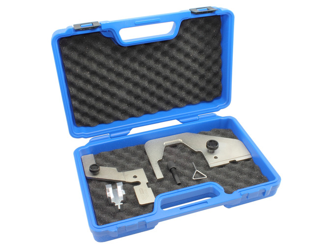 Bauzeitraumabhängig gab es ab dem Motorenupdate 2015 eine Änderung in der Nockenwellensteuerung. Zum Ausrichten der Nockenwellen sind in diesem Satz beide Werkzeuge enthalten. Ein zusätzlicher Dorn ersetzt den in Reparaturanleitungen angegebenen Bohrer von 5mm. Es empfiehlt sich vor dem Lösen der Riemenscheibe den Zahn zum KW-Sensor zu markieren und ebenso auf dem Stirndeckel die Gegenüberliegende Position anzuzeichnen.