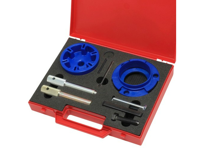 Mit diesem Werkzeugsatz ist es möglich die Nockenwelle, Kurbelwelle sowie die Einspritzpumpenwelle auf OT zu stellen. Außerdem beinhaltet das Set auch noch ein Werkzeug, welches zum Aus- u. Einbau der Dieseleinspritzpumpe eignet.