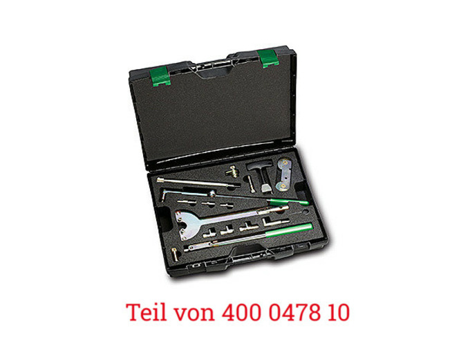 Mit diesem Werkzeugsatz lassen sich die Steuerzeiten im Steuertrieb einstellen. Der Werkzeugsatz kommt bei Fahrzeugen der VW-Gruppe mit 1.0, 1.2 6V, 1.2 12V mit 3-Zylinder Benzin-Motoren sowie 1.2 TSI/TFSI, 1.4 FSI/TSI/TFSI und 1.6 FSI mit 4-Zylinder Benzin-Motoren zum Einsatz.