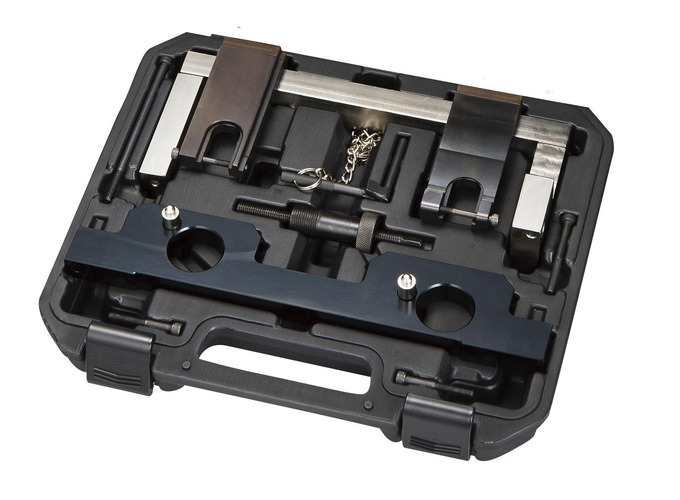 Werkzeugsatz mit dem Sie die Nockenwelle und die Kurbelwelle beim Wechseln der Steuerkette richtig positionieren können.