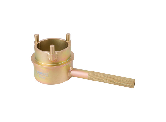 Spezialwerkzeug zum Gegenhalten der Kurbelwellen-Riemenscheibe bei der Motoreninstandsetzung von Mercedes-Motoren.