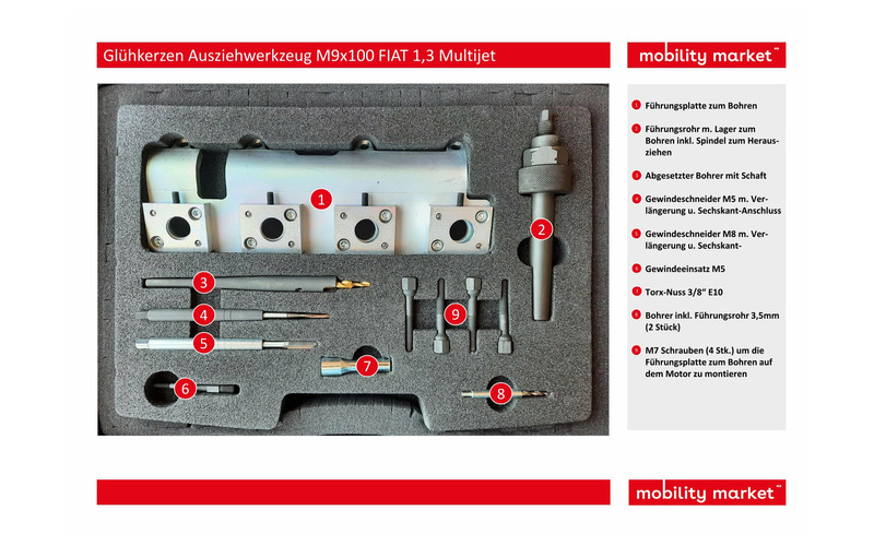 Glühkerzen Ausziehwerkzeug M9x100 FIAT 1,3 Multijet