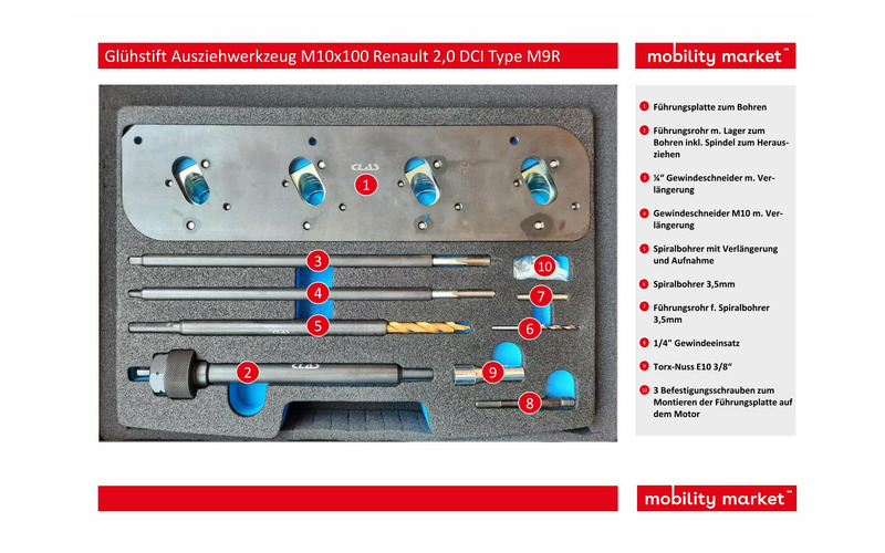 Glühstift Ausziehwerkzeug M10x100 Renault 2,0 DCI Type M9R
