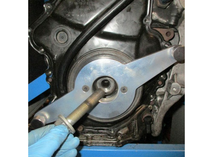 - Hält die Position des Kurbelwellenrads während des Ausbaus des Schwingungsdämpfers