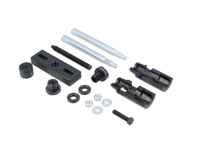 Dieser Einspritzdüsenabzieher wurde entwickelt, um die Einspritzdüsen aus Dieselmotoren Ford EcoBlue als Ganzes abziehen zu können. Bisher ließen sich die EcoBlue-Einspritzdüsen nur ausbauen, indem der Kraftstoffrücklaufanschluss und der Piezokopf durch Abbrechen entfernt wurden, wodurch die Einspritzdüse nicht mehr zu gebrauchen war. Mit diesem Werkzeugsatz können diese Einspritzdüsen abgezogen werden, ohne sie zu zerstören.