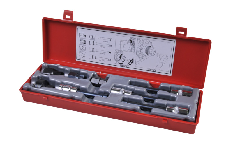 Spezielles Set von Steckschlüsseleinsätzen und Adapter, notwendig zur Entfernung und Installation von 'Freilaufnaben' und Riemenscheiben an Lichtmaschinen