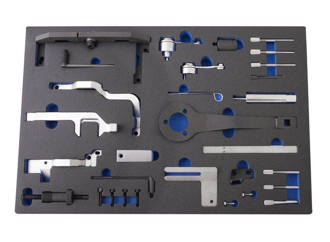 Werkzeugsatz mit dem Sie die Nockenwelle und die Kurbelwelle beim Wechseln des Zahnriemens richtig positionieren können.