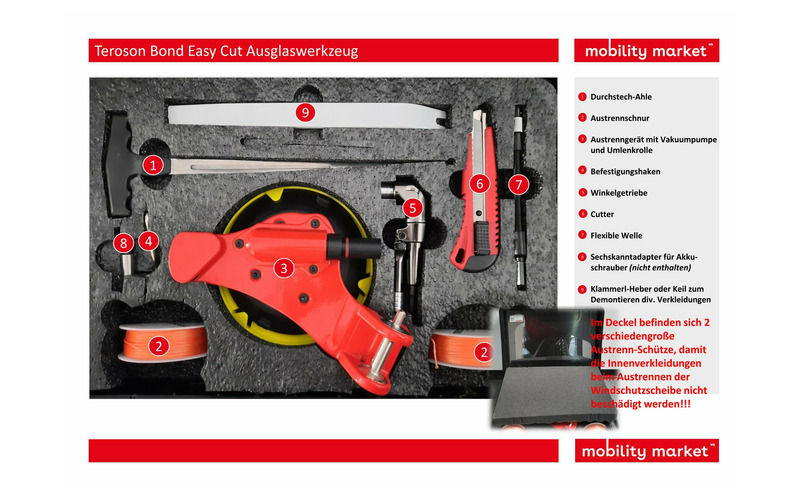TEROSON® BOND Easy Cut ist ein Werkzeugset mit sämtlichen Werkzeugen die nötig sind, um KFZ-Scheiben oder andere KFZ-Teile ohne Hilfsperson zu entfernen. Durch die Verwendung einer geflochtenen Polyethylenschnur statt konventioneller Drahtseile werden Schäden an der Lackierung der Fahrzeugkarosserie oder anderen Teilen vermieden. Darüber hinaus wird eine sichere Anwendung gewährleistet, da die Nylonschnur im Falle des Reißens kein Verletzungsrisiko birgt.